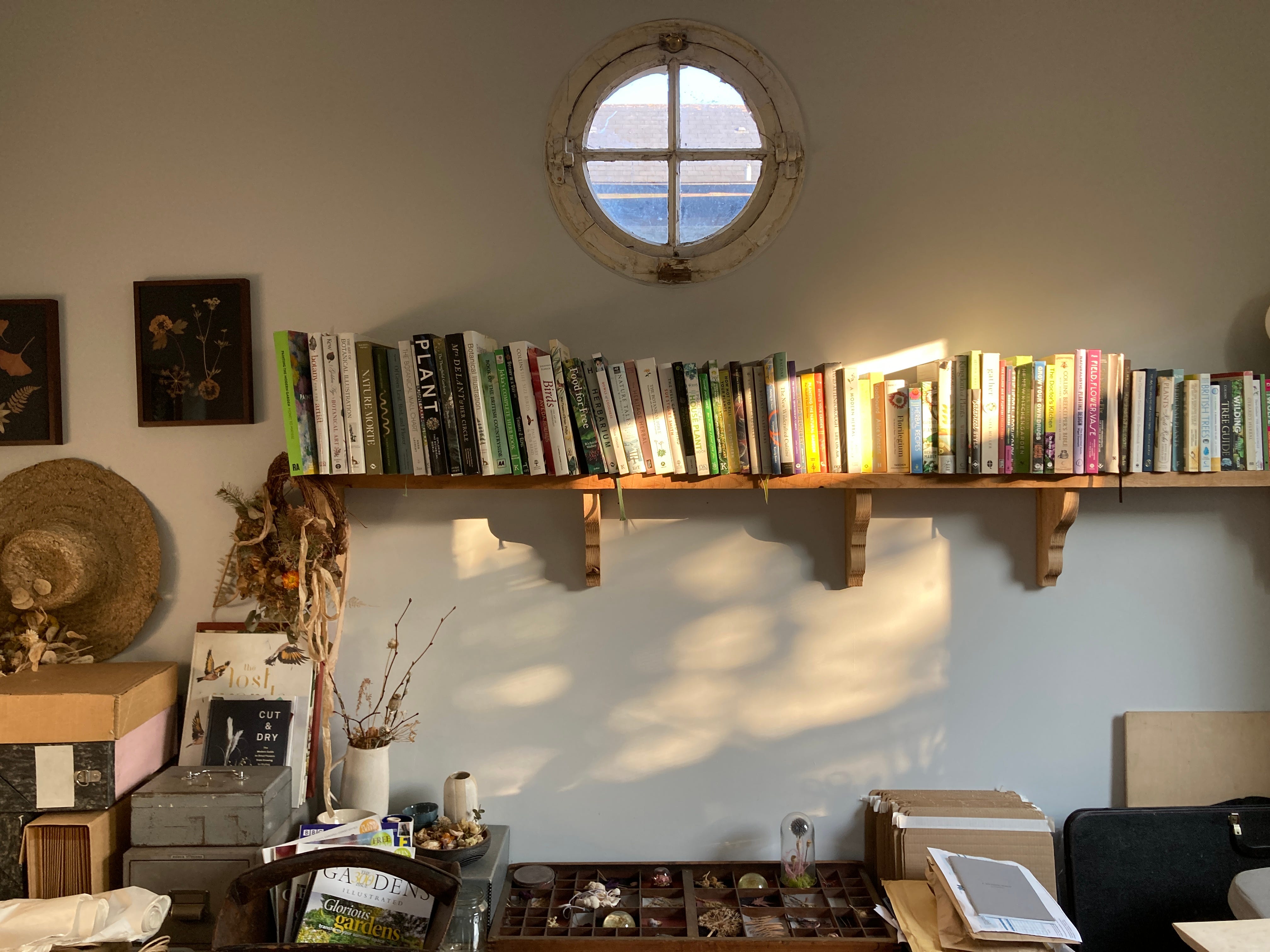 I had one of these such spaces for about a year, one that was supposed to last many years, be that room of one’s own. It still stands and having visited my neighbour is now furnished with a comfy looking sofa , a table, and objects on my bookshelves that catch the beautiful light that flows through stable doors and round window. My writing must be done elsewhere and true to an almost carnal need to string words into sentences, continue it does.